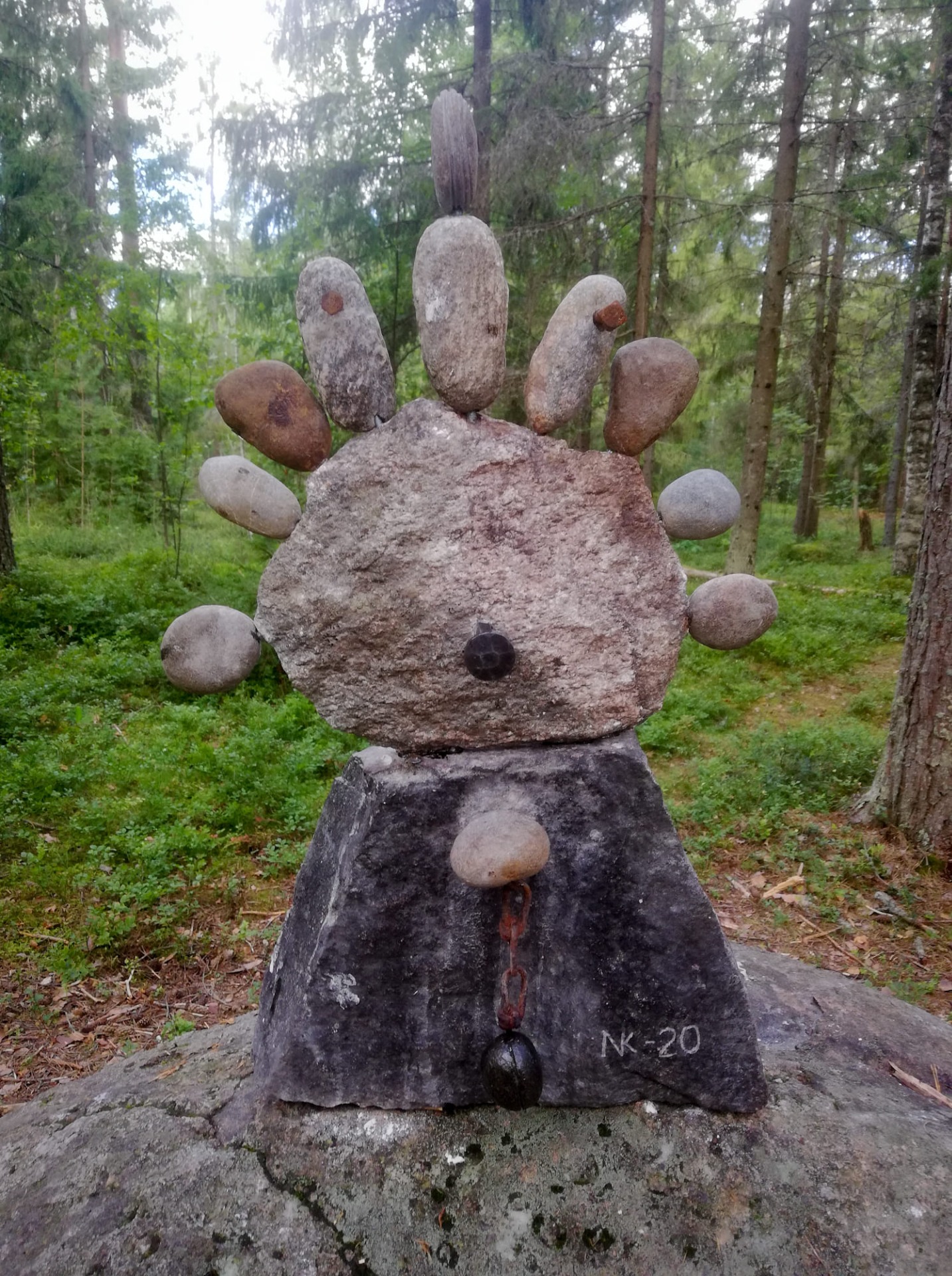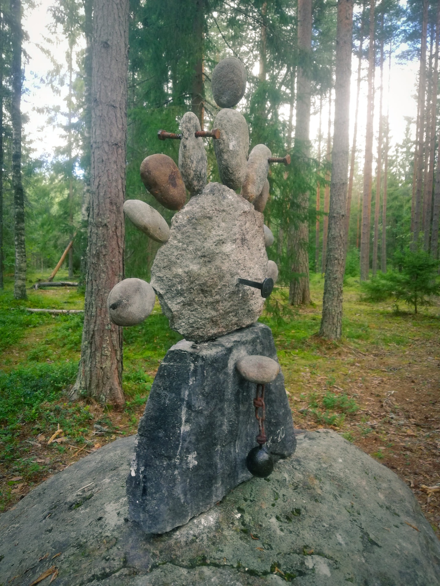 Teos 1/12 ympäristötaideprojektista, jossa vein tusinan kiviteoksia lenkkeilijöiden iloksi Järvenpään Peltolaan.